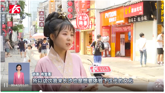 近年来,汉服逐渐受到年轻消费群体的热捧,穿汉服、逛古街,汉文化与文旅消费激情相拥,成为长沙一道靓丽的风景线。目前,太平街从街头到街尾,短短375米,零星分布着十多家汉服馆。优美的线条,古朴的纹样,精致的配饰,汉服馆中处处可见时尚与传统融合,青春与古风共鸣。