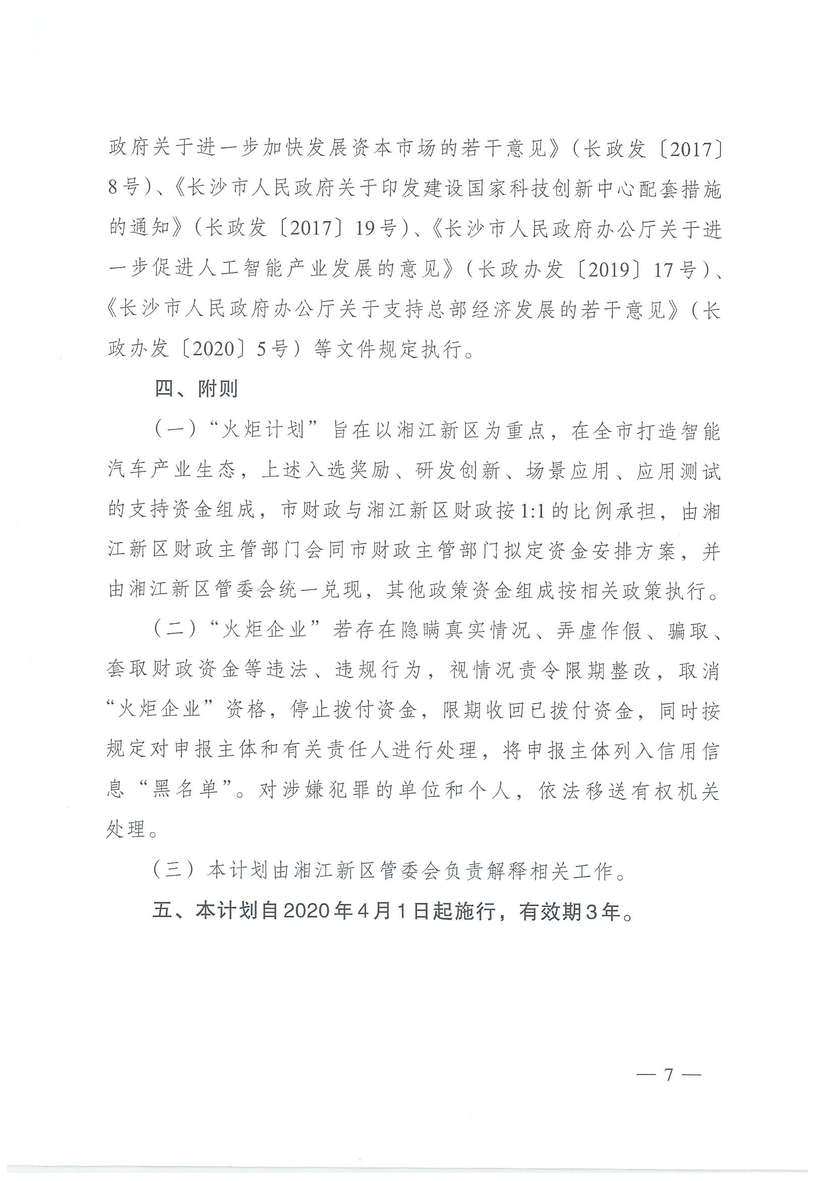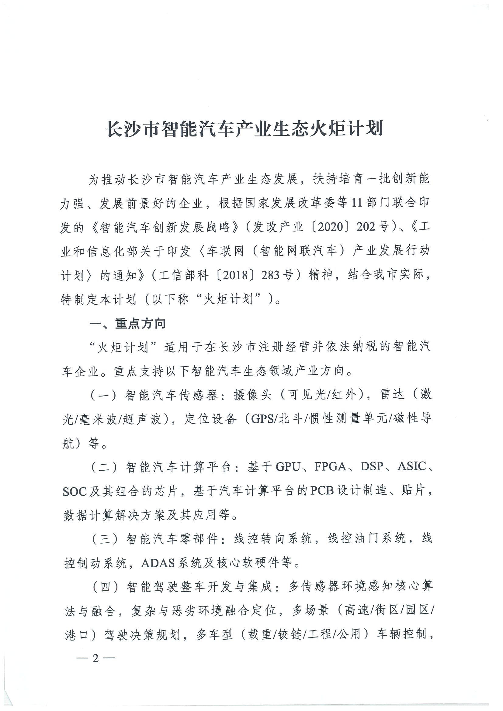 关于印发长沙市智能汽车产业“火炬计划”和“头羊计划”的通知(长政办发[2020]12号)